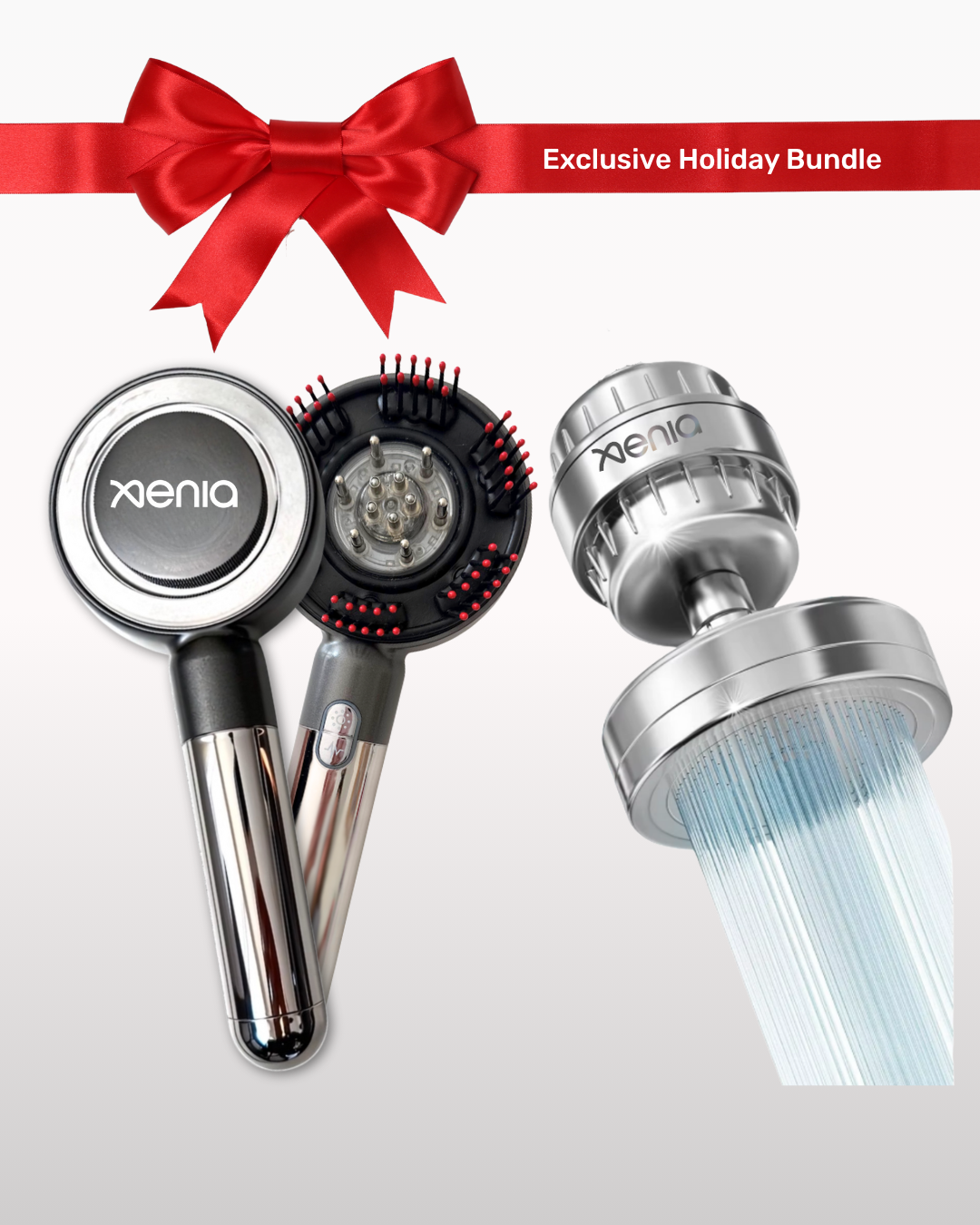 This exclusive holiday set brings together Xenia Beauty Labs’ two bestsellers: The Xenia GRO 4-in-1 Hair Growth Brush and the Xenia FLO 20-Stage Shower Filter for the most advanced at-home hair transformation.